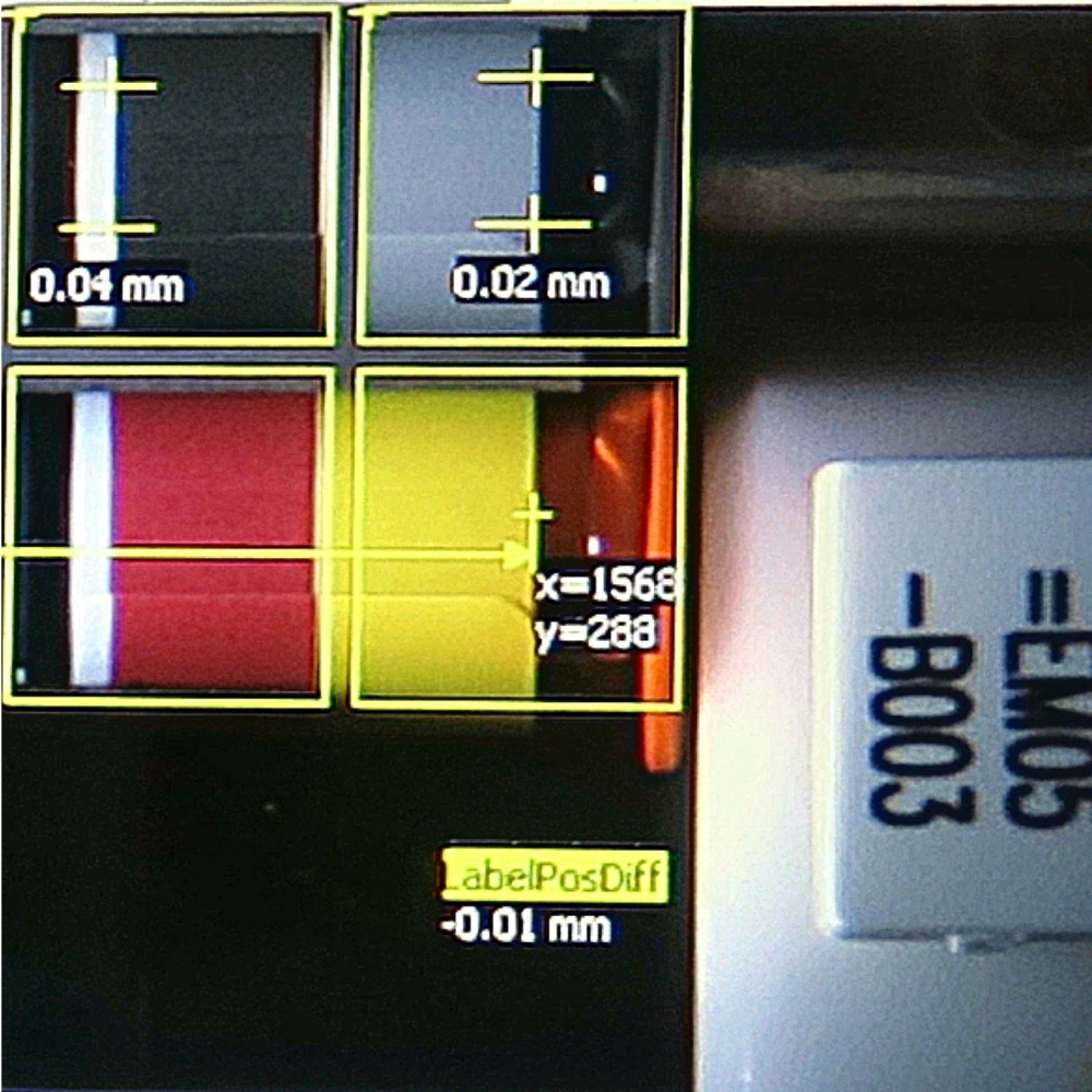 When cartridges enter the labeling solution in the trays, it is detected whether the plunger retainer is located on the cartridge. If a plunger retainer is not present, the tray including cartridges will be transferred to the tray outfeed. All labels are controlled by vision and only approved labels are applied to the cartridge; non-approved labels are placed on the label reject plate. After label application, the location of the label on the cartridge is checked, the tolerances are +/- 0.2 mm. Unapproved cartridges are rejected into the reject bin. Only approved cartridges are transferred to the outfeed conveyor.